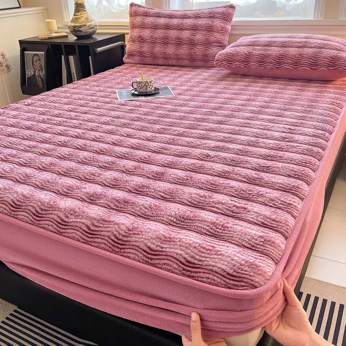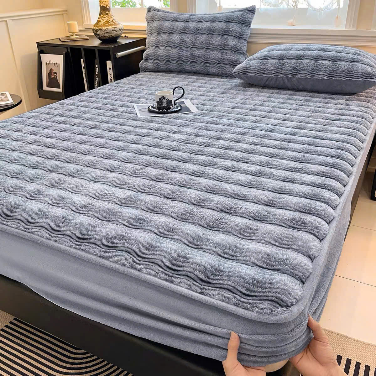 Bộ ga gối nỉ lông chồn được sản xuất từ chất liệu nỉ cao cấp, bề mặt mềm mịn, mang lại cảm giác êm ái và dễ chịu khi nằm. Vải có độ mịn cao, hạn chế rụng lông, đồng thời giữ màu tốt, giúp sản phẩm luôn bền đẹp trong quá trình sử dụng lâu dài.