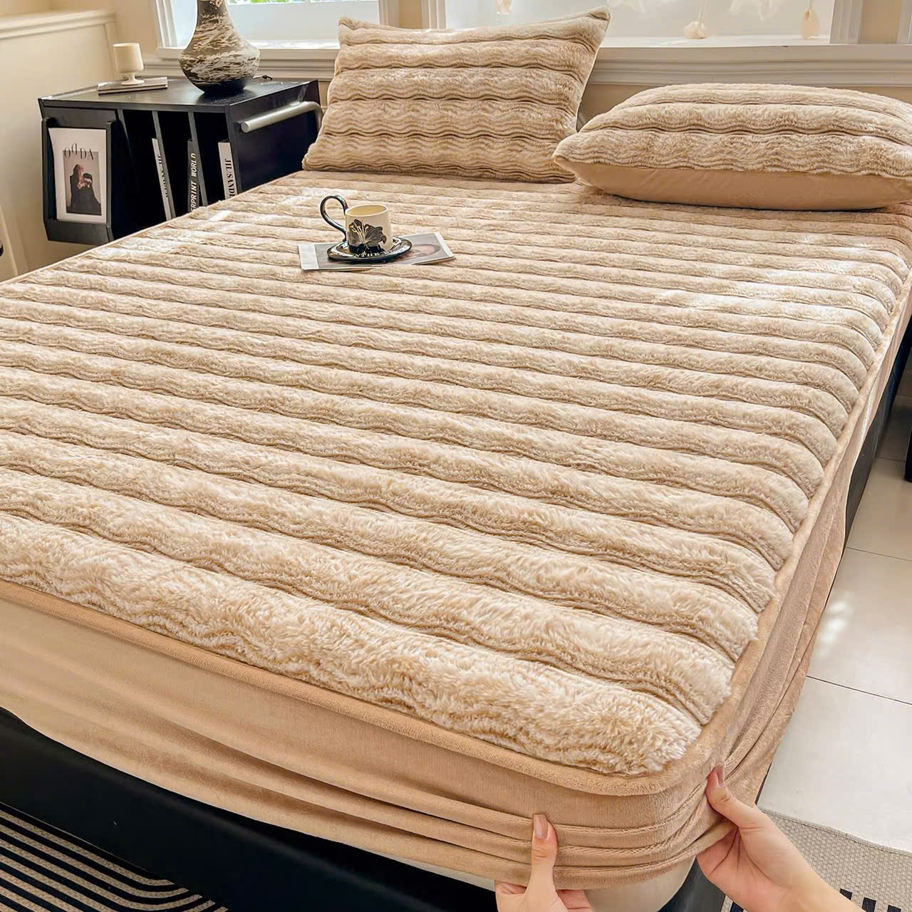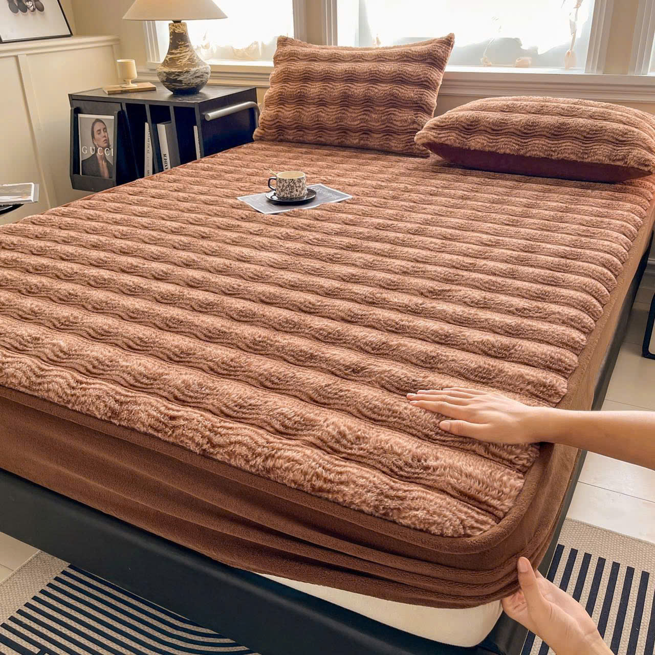 Thiết kế ga chun ôm sát đệm, giúp cố định chắc chắn, không xô lệch khi trở mình. Đường may viền tỉ mỉ, chắc chắn, giữ form đẹp và dễ dàng trải phẳng. Họa tiết lông chồn nổi bật, mang phong cách hiện đại, sang trọng, phù hợp với nhiều không gian phòng ngủ từ đơn giản đến cao cấp.