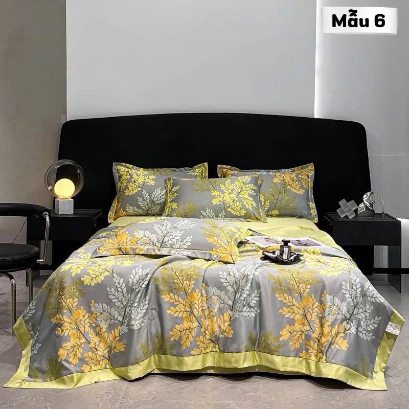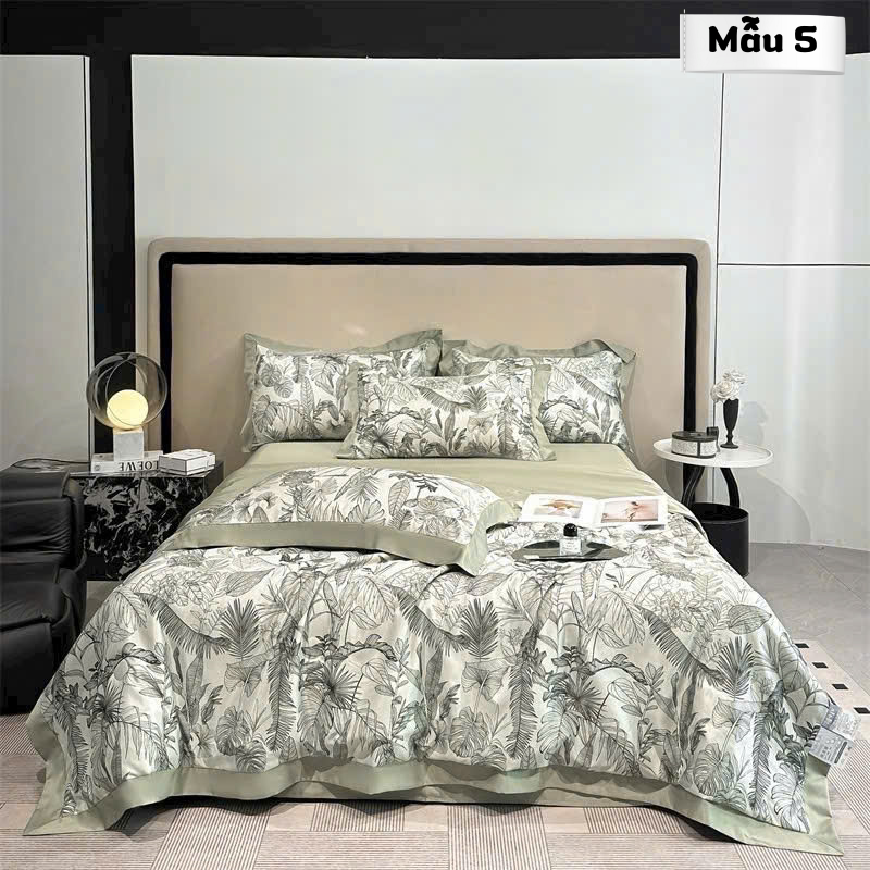 Tên sản phẩm: Set 4 món chăn ga phi lụa Thái họa tiết kèm chăn chần bông cao cấp