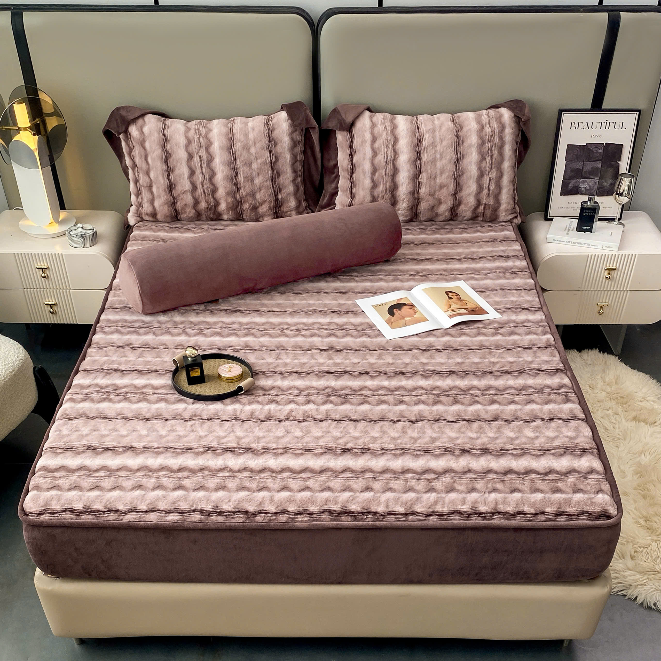 Bộ ga gối được sản xuất từ vải nỉ cao cấp, dệt chắc tay với mật độ sợi dày, giúp giữ ấm tốt nhưng vẫn thoáng, không gây bí khi sử dụng lâu. Bề mặt vải mềm mịn, tạo cảm giác êm ái ngay từ lần chạm đầu tiên, đặc biệt phù hợp với thời tiết thu đông và mùa lạnh.