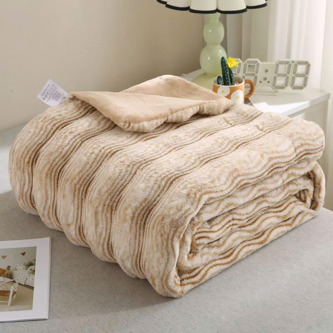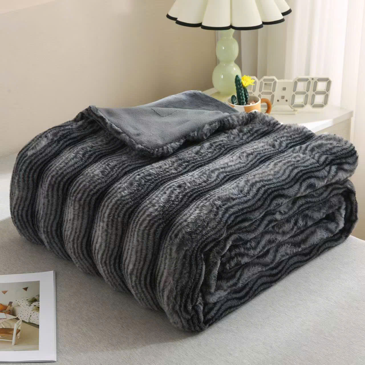 Họa tiết vằn sọc tinh tế, màu sắc hài hòa, phù hợp với nhiều phong cách nội thất phòng ngủ, từ hiện đại đến tối giản. Không chỉ là vật dụng giữ ấm, chăn còn góp phần tạo điểm nhấn thẩm mỹ cho không gian sống. -