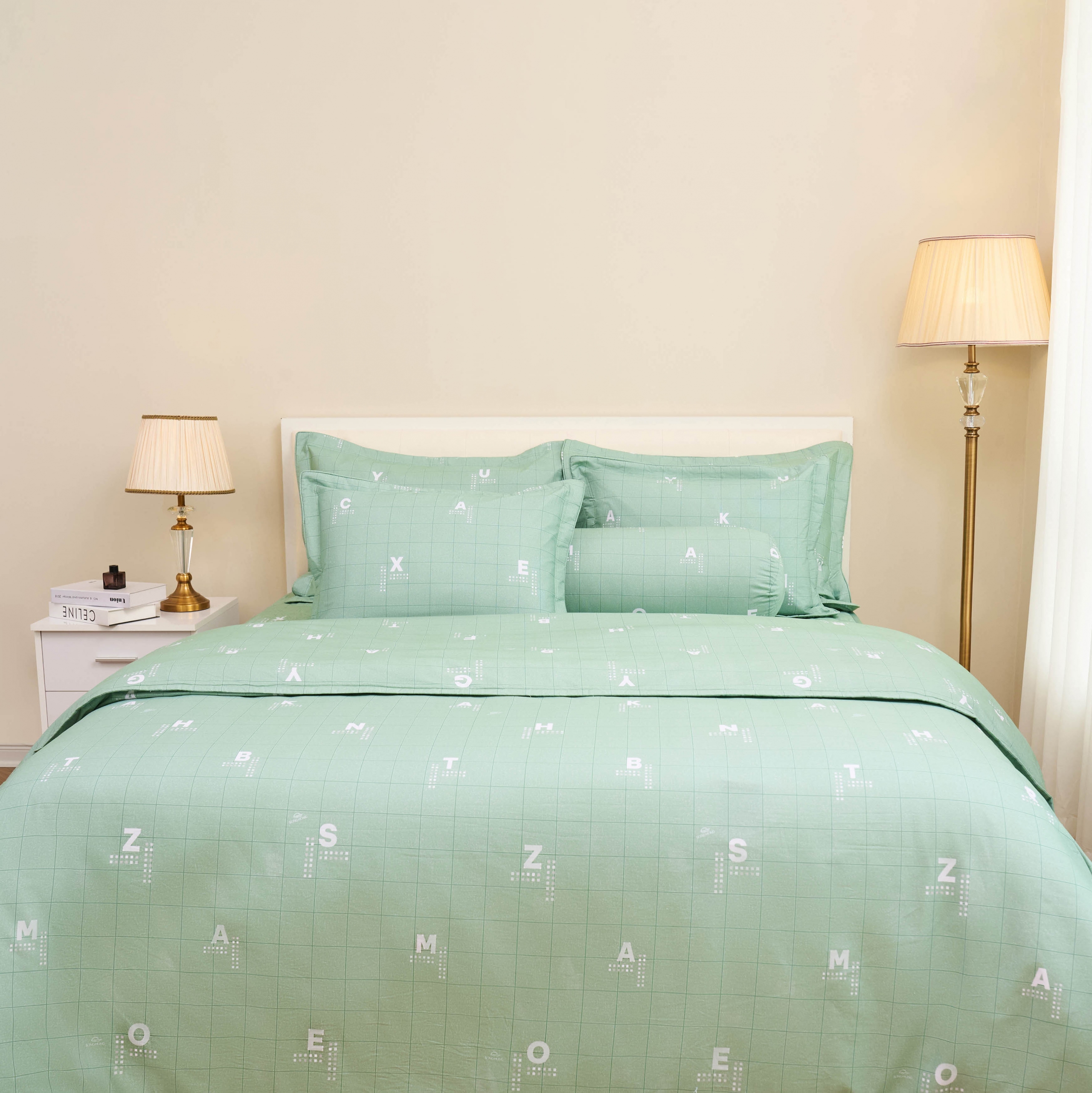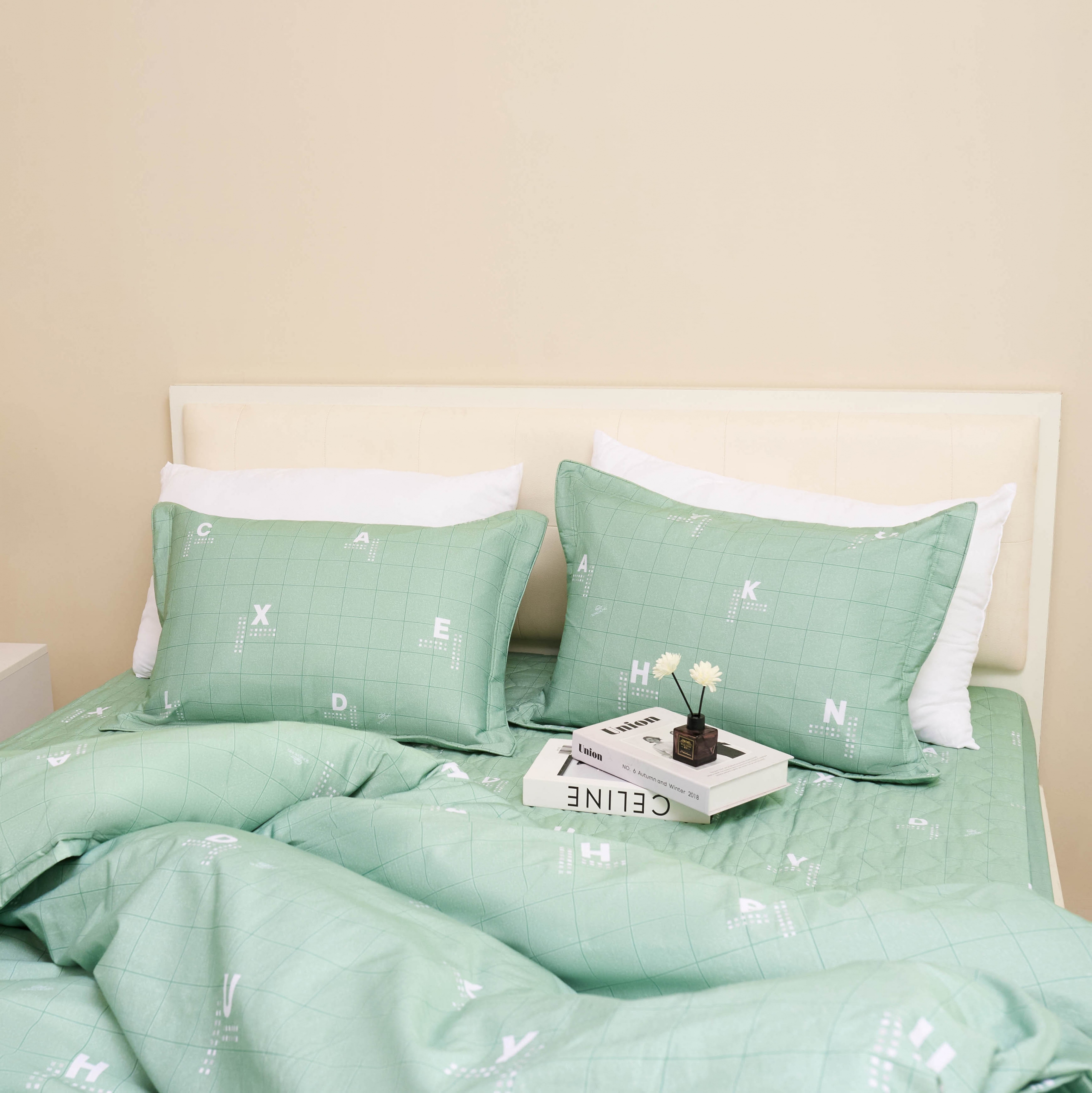 - Bộ sản phẩm được làm từ 100% cotton thiên nhiên, sợi vải mềm, mịn, thoáng mát thấm mồ hôi tốt sẽ mang đến cho gia đình những giấc ngủ ngon.Đặc biệt sợi vải có khả năng kháng khuẩn cao, ngăn ngừa đáng kể sự thâm nhập của vi khuẩn, tránh chăn ga bị nấm mốc ngay cả trong thời tiết oi nóng.